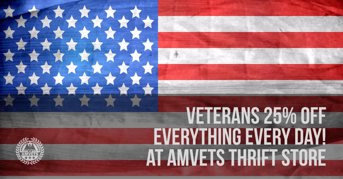 AMVETS Thrift on the App Store AMVETS National Service Foundation Thrift Stores Rock! Been shopping in Buffalo and Long Island, NY as well as Knoxville and Memphis, TN always great bargains and being a Military Veteran gets a 25 percent discount everyday. This is always my first stop before I hit Walmart or Kmart. Get in and do your shopping today you will see the savings!