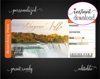 Printable NIAGARA FALLS Surprise Trip Gift Ticket. Boarding Pass. Trip Ticket. Vacation Ticket. Instant Download. Editable PDF File.