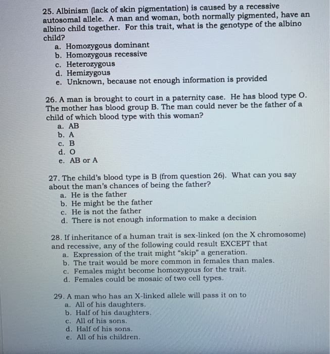 Solved 25. Albinism (lack of skin pigmentation) is caused by ...